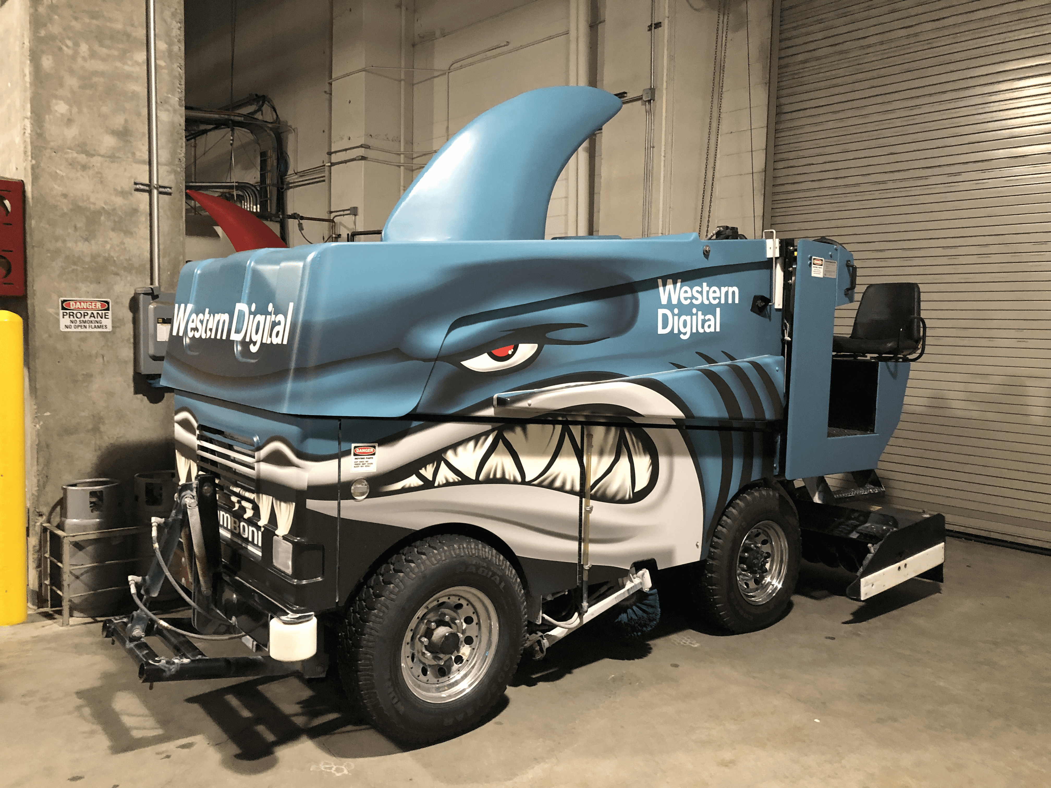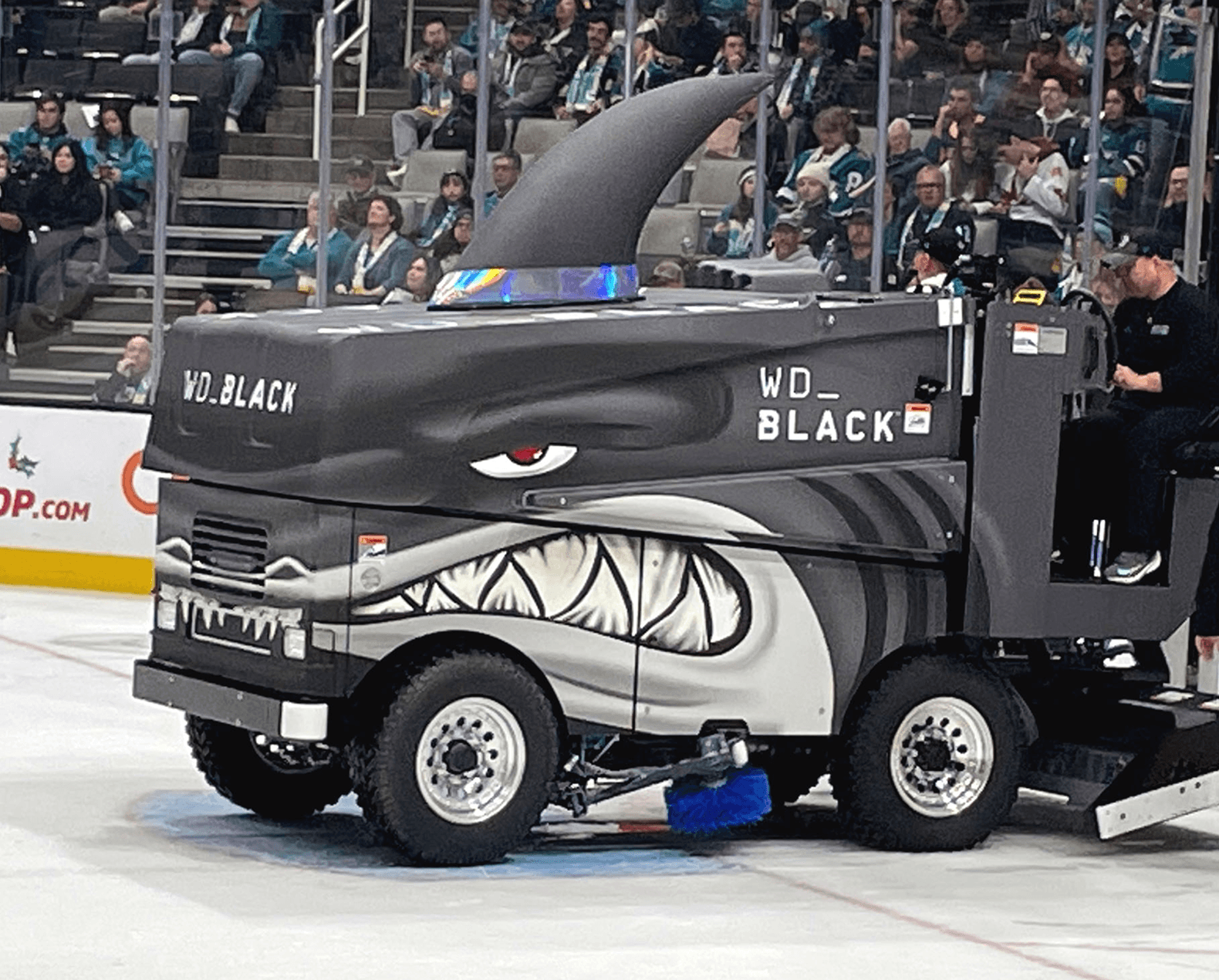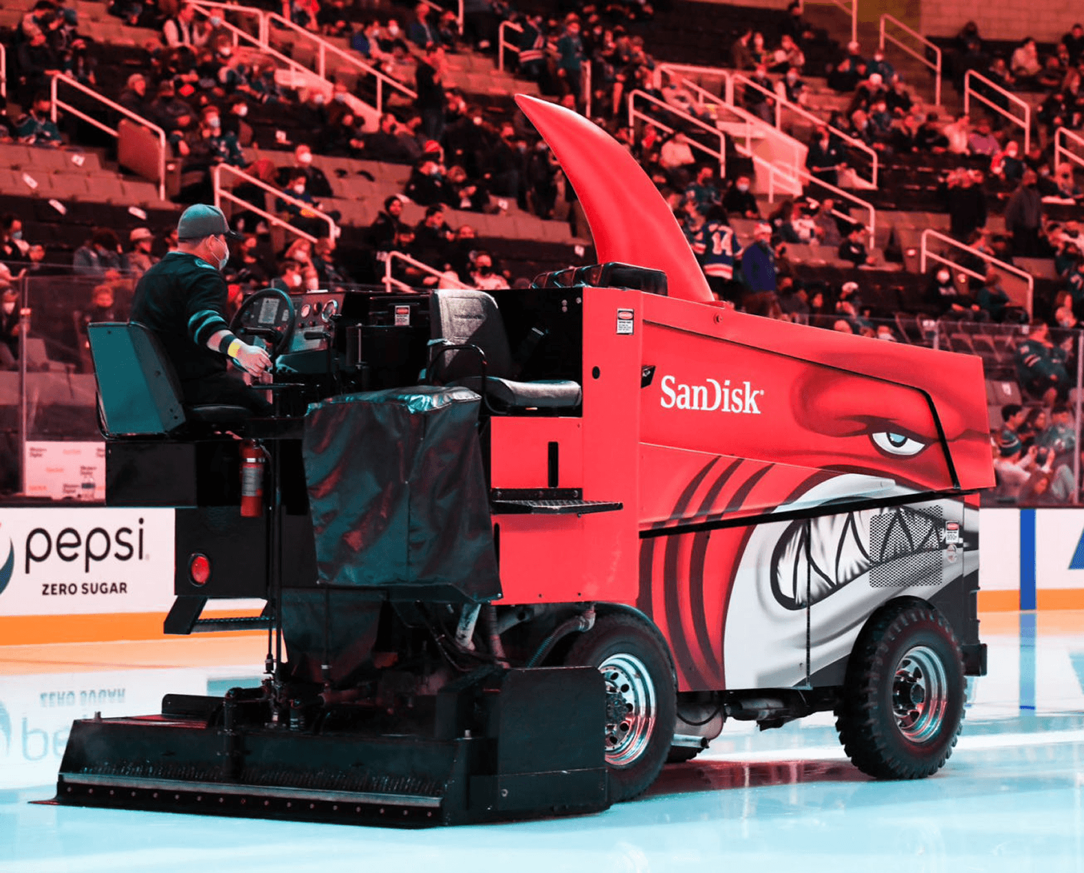 Created branded assets for the San Jose Sharks SAP Center, including Zamboni graphics, stadium scoreboard, fascia and other digital signage.
